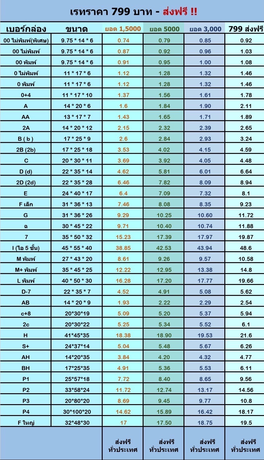 เรทส่งฟรีทั่วประเทศ เริ่มที่สั่งครบ 799 บาทขึ้นไป